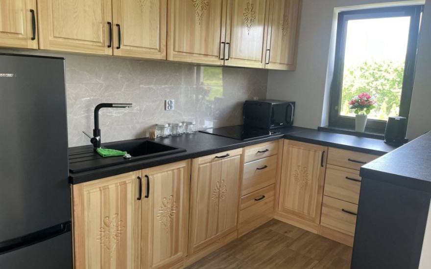 Domek 3 – Góralski to wyjątkowe miejsce urządzone w klimacie beskidzkiego góralskiego stylu, gdzie króluje ciepłe drewno, przytulne wnętrza i autentyczny folklor. Drewniane meble wykonane z litego drewna zdobią charakterystyczne, ręcznie rzeźbione ornamenty, które przywodzą na myśl tradycyjne wzory regionu. Ten stylowy domek o powierzchni około 80 m² oferuje pełen komfort: trzy sypialnie, przestronny salon z jadalnią, w pełni wyposażoną kuchnię, łazienkę, Wi-Fi, TV oraz dostęp do ogrodu z miejscem na grill i bezpłatnym parkingiem. Idealny na romantyczny wypad, weekend lub wakacje dla tych, którzy pragną odpocząć w autentycznej beskidzkiej atmosferze, otoczeni naturą i ciszą.